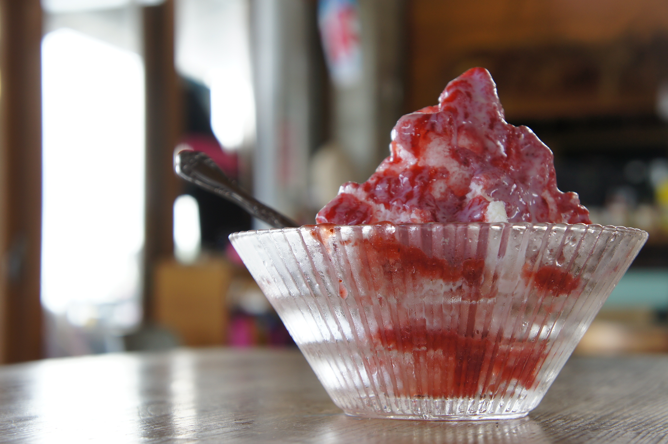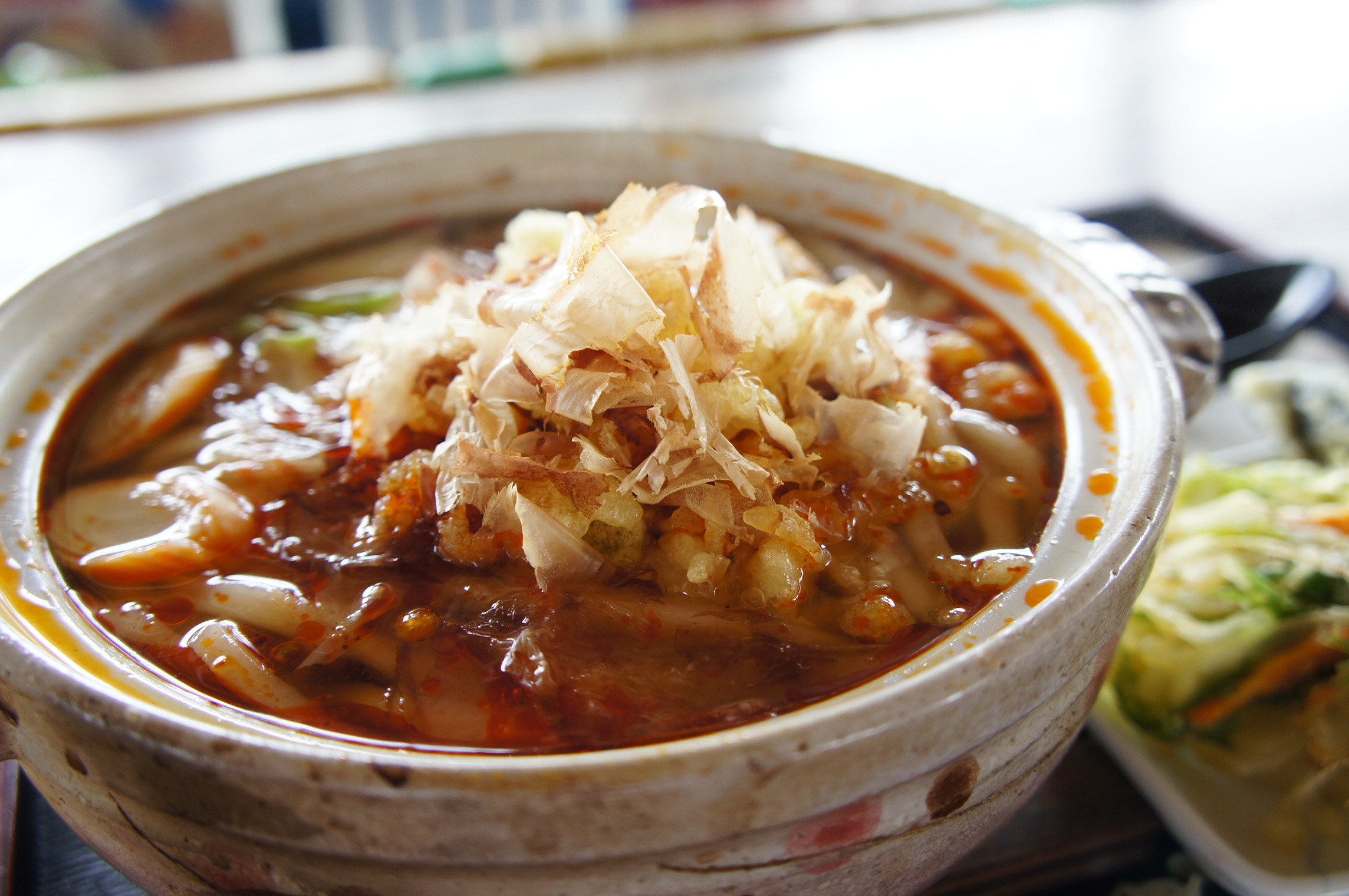 ラー油の効いた鍋焼きうどん&果汁たっぷりのイチゴかき氷
